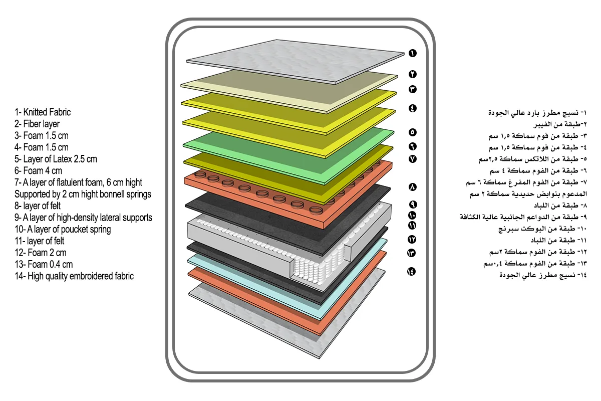 | اختر المقاس | 200×120, 200×140, 200×160, 200×180, 200×200 |