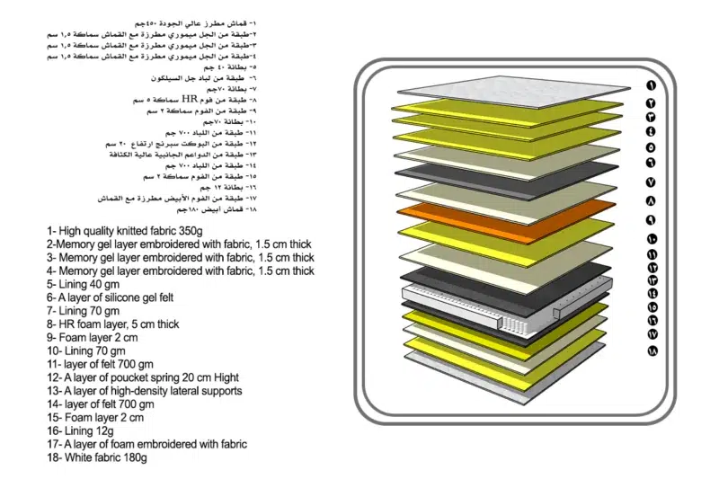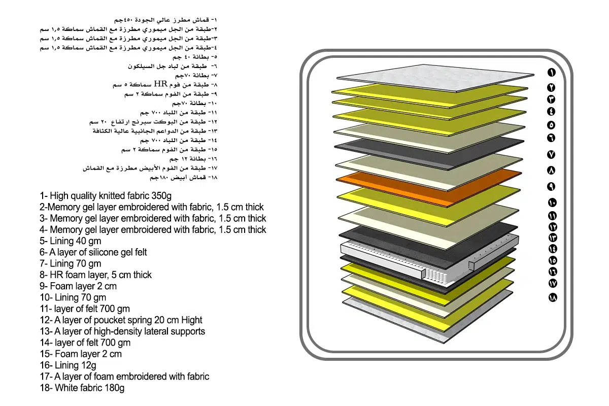 | اختر المقاس | 200×120, 200×140, 200×160, 200×180, 200×200 |